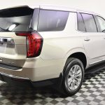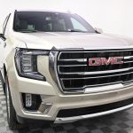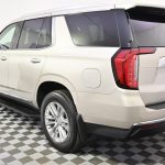 The 2022 GMC Yukon SLT is a full-size luxury-oriented SUV that delivers V8 power, true three-row space, and a premium feature set designed for families and drivers who want comfort, presence, and capability. Finished in Pearl Beige Metallic with a Dark Walnut/Slate interior, this 4WD Yukon is powered by a 5.3L V8 and 10-speed automatic transmission, giving it strong performance for daily use, long-distance trips, towing, and larger passenger loads. Dealer notes highlight one-owner and clean CARFAX history, along with a long list of desirable equipment that includes panoramic moonroof, Bose premium sound system, heated and ventilated front seats, heated second-row seats, heated steering wheel, navigation, HD surround vision, hands-free power liftgate, wireless charging, rear pedestrian alert, blind spot assist, active lane assist, rear A/C, memory seating, third-row power-folding split-bench seat, SLT Luxury Package, and SLT Premium Package. With low mileage for the year and an especially strong blend of power, space, and upscale amenities, this Yukon SLT is a standout choice for buyers seeking a premium large SUV with real presence and everyday family functionality.