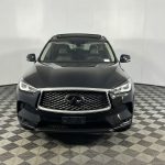 NO HIDDEN FEES! ALL RECONDITIONING COSTS ARE FULLY INCLUDED IN OUR PRICES. ONE OWNER LEASE RETURN! PANORAMIC ROOF, LEATHER, 19″ WHEELS, BLIND SPOT MONITORS AND LANE DEPARTURE WARNING! Black Obsidian 2023 INFINITI QX50 LUXE FWD with a CVT and I4 engine delivers smooth performance and upscale comfort with an efficient 23/29 city highway MPG rating. This refined luxury SUV features an exterior rear parking camera, rear parking sensors, lane departure warning and blind spot monitors for added confidence. Interior highlights include leather-appointed seat trim, heated front seats, a power moonroof and a power liftgate. Additional conveniences include remote keyless entry and steering wheel mounted audio controls, while 19″ silver painted aluminum alloy wheels complete the sophisticated look of this recent arrival INFINITI QX50 LUXE.